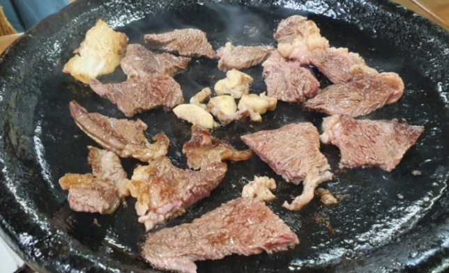 평창 맛집 추천 7 세 번째! 이 집만의 노하우로 숙성시킨 숙성 등심이 정말 맛있는 곳으로 다른 식당 하고는 다르게 무쇠로 된 불판을 사용합니다. 각종 반찬류도 정갈하고 맛있습니다. 특히 마무리로 불판에 부어 끓여주는 된장찌개는 정말 예술에 가까운 맛입니다. 용평에 사는 분들도 와서 많이 먹는데 삼겹살도 싱싱한 맛을 냅니다. 대표 메뉴는 토시살 5만 원, 차돌박이 3만 원, 등심 3만 8천 원입니다.